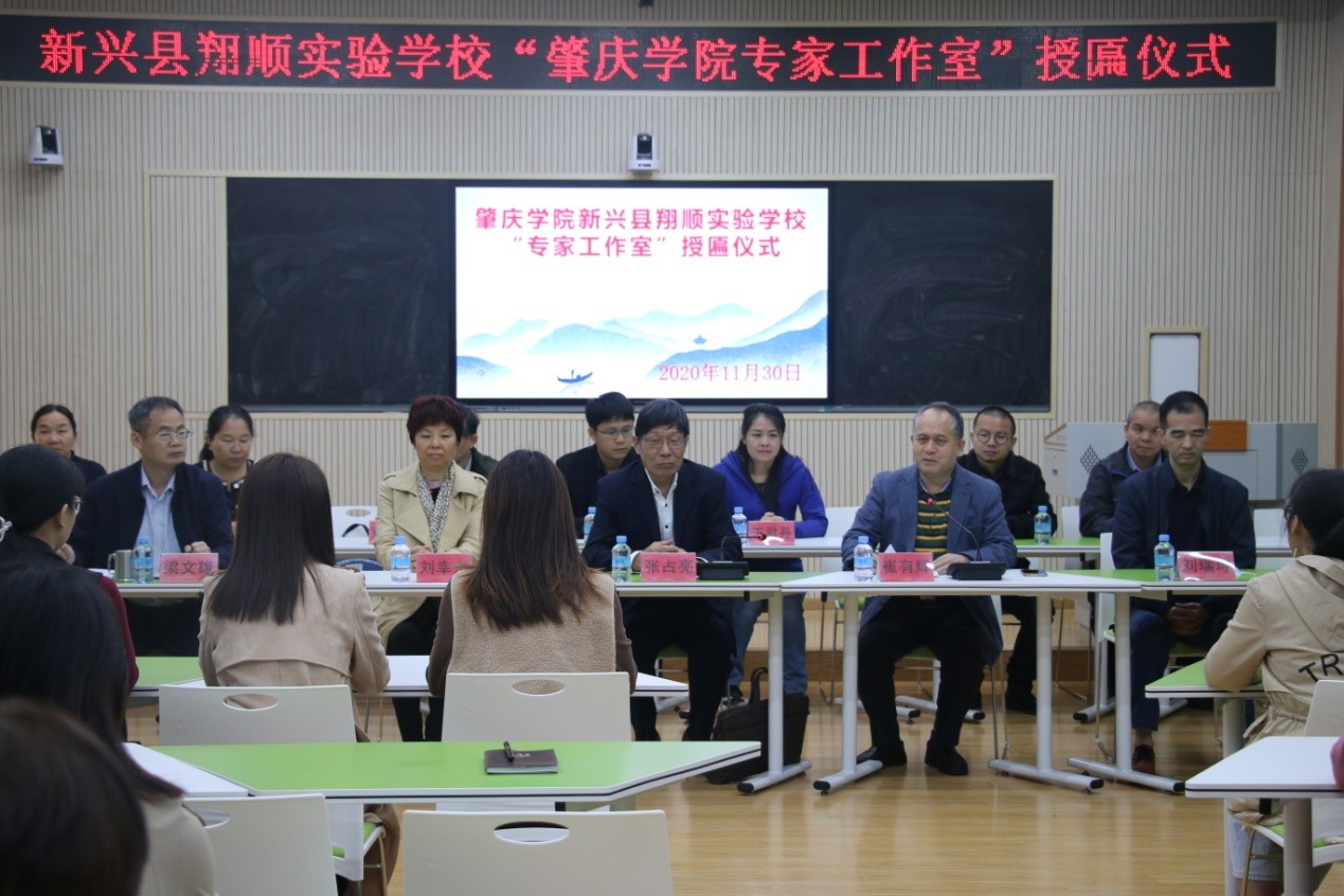 为进一步加强公司创建国家级教师教育改革创新实验区内涵建设,充分发挥专家工作室的示范、激励、凝聚和辐射作用,11月30日,云顶国际公司党总支书记张占亮带领专家团队与云浮市新兴县教育局进行了深入座谈,并在翔顺实验公司、环城中学、实验中学、六祖中心小学、蚕岗中学以及稔村中学六所基地公司,举行了“云顶国际专家工作室”挂牌仪式。
