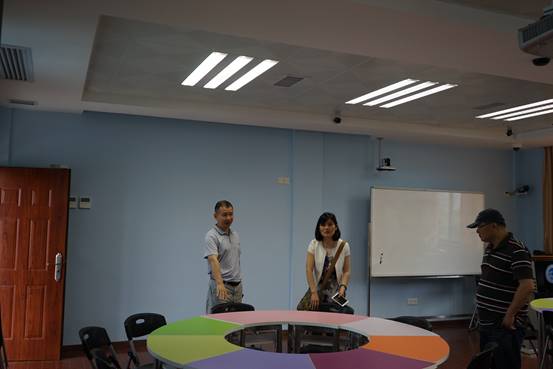 随后,客人们在云顶国际李小定老师的陪同下参观了我中心书画训练室、普通话测试站、远程交互中心、教师信息能力训练室、团体辅导室、个体辅导室、教师形象室等多个功能室。客人们对我中心教师教育职前职后一体化功能及硬软件建设倍加赞赏。