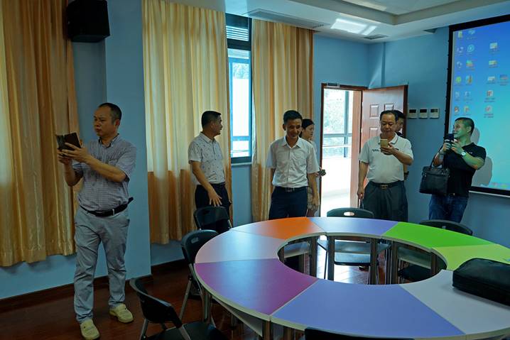 2017年6月29日下午,汕头市潮南区教育局领导一行六人来到云顶国际省级中小学教师发展中心,在我中心培训部肖晓玛主任、黄燕芬老师、王子瑫老师的陪同下,参观了书画训练室、普通话测试室、远程教学交互中心、教学新媒体实训室、教学设计与教学反思室、智慧教室、团体辅导室、教师形象设计室、微课制作室等各个功能室。客人们对我中心的整体设计及先进硬件设备给予了充分肯定和赞扬。