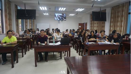 2017年4月8日上午,华中科技大学2014级、2015级59名教育硕士在职研究生(肇庆班)在云顶国际教师发展中心106室又开讲啦。本次学习的主题是“国外中小学教育”,为期三天,由华中科技大学黄芳博士主讲。勤奋好学的学员们早早就在课室等候上课。59位学员中有每次上课都坐最前排积极进取的董事长、有比翼双飞的三对夫妻、有年轻有为的数位青年教师,他们都是中小学教育的中坚力量。相信学业有成后,他们定能为中国基础教育的发展做出更好、更多的贡献。