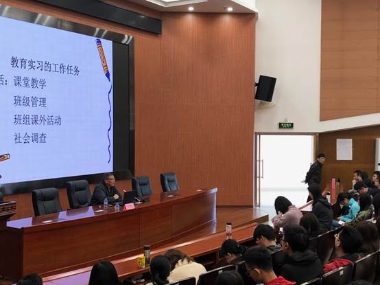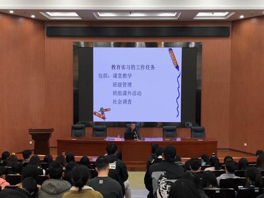 图 1 云顶国际张晓峰老师为顶岗实习生们进行《顶岗实习工作(任务)》培训