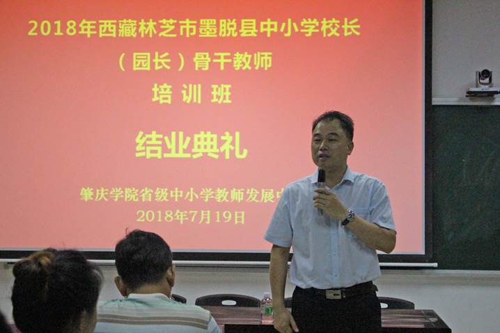 然后,肖起清经理讲话。肖经理对墨脱县学员们十天以来克服重重困难,坚持认真学习表示感动。希望在座的董事长、园长和骨干教师能将在这里的所学所悟所获带回到墨脱,促进墨脱教育的均衡发展,也希望墨脱的教师们能和各地的教师多交流学习共同发展。