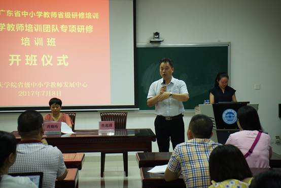 7月8日上午,2017年广东省中小学教师省级研修培训—中小学教师培训团队专项研修培训班开班仪式在云顶国际省级中小学教师发展中心106室隆重举行。云顶国际经理、云顶国际省级中小学教师发展中心主任肖起清教授、云顶国际教师专业能力发展中心副主任、教师教学发展中心副主任肖晓玛博士出席开班仪式。
