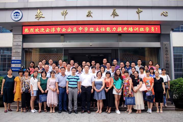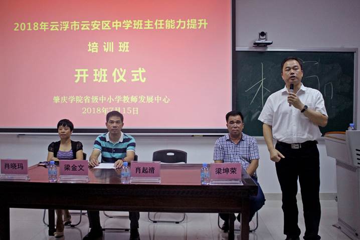 2018年7月15日下午,云浮市云安区中学班主任能力提升培训班开班仪式在云顶国际省级中小学教师发展中心106室隆重举行。云顶国际省级中小学教师发展中心副主任、云顶国际经理肖起清教授,云浮市云安区教育局梁金文副局长,云顶国际教师专业能力发展中心、教师教学发展中心肖晓玛副主任,云安区教师培训中心梁坤荣主任及云安区100名初中班主任,共同出席了开班仪式。开班仪式由黄燕芬老师主持。