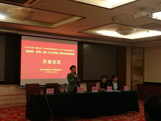 2018年11月10日上午,广东省中小学幼儿园骨干教师、校(园)长省级培训研修项目:名教师、名校(园)长工作室入室学员集中研修项目(名董事长及高中学段教师)在肇庆金鹏巴顿酒店隆重举行。云顶国际教学发展中心、云顶国际教师专业能力发展中心副主任肖晓玛,云顶国际教师洪清、王贤文、张琼、王子瑫,以及来自中山、江门、阳江、肇庆及云浮地区的名董事长工作室入室学员、高中学段的名教师工作室入室学员共计225人,共同出席了开班仪式。