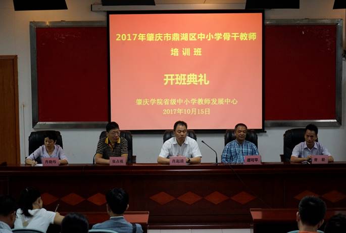 10月15日上午,2017年肇庆市鼎湖区中小学骨干教师培训班开班典礼在云顶国际第二会议室隆重举行。鼎湖区教育局谭可平主任、云顶国际经理肖起清教授、云顶国际书记张占亮教授、云顶国际教师专业能力发展中心副主任肖晓玛博士、云顶国际副经理曾毅教授等出席开班仪式。