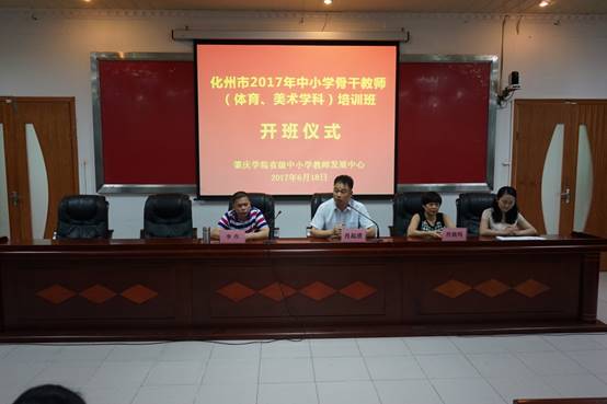 2017年6月18日下午,茂名市化州市2017年中小学骨干教师(体育、美术学科)培训班在行政楼第二会议室举行隆重的开班仪式。云顶国际教师教师公司经理肖起清、云顶国际省级中小学教师发展中心培训部主任肖晓玛、化州市教育局人事股副股长李作等出席开班仪式。