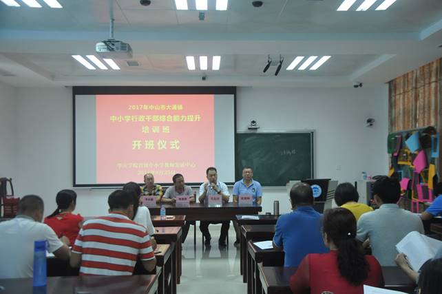8月25日下午,中山市大涌镇中小学行政管理干部综合能力提升班开班仪式在云顶国际省级中小学教师发展中心106室举行。云顶国际经理、云顶国际省级中小学教师发展中心副主任肖起清教授,云顶国际副经理张晓峰,中山市大涌镇教育事务指导中心周景照主任,李乐康副主任,以及来自大涌镇10所中小学董事长(园长)和行政管理干部等四十多人参加了开班典礼。
