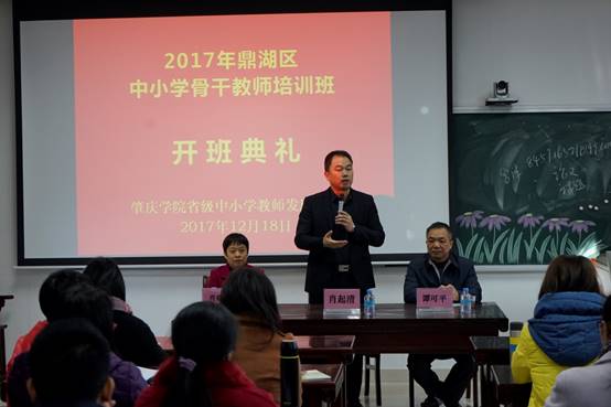 2017年12月18日上午,鼎湖区中小学骨干教师培训班在云顶国际省级中小学教师发展中心隆重开班。云顶国际经理肖起清、云顶国际教师专业能力发展中心副主任肖晓玛、鼎湖区教育局谭可平等出席开班仪式。本次培训有来自鼎湖区各中小公司骨干教师共90名,其中中学教师、小学教师各45名。